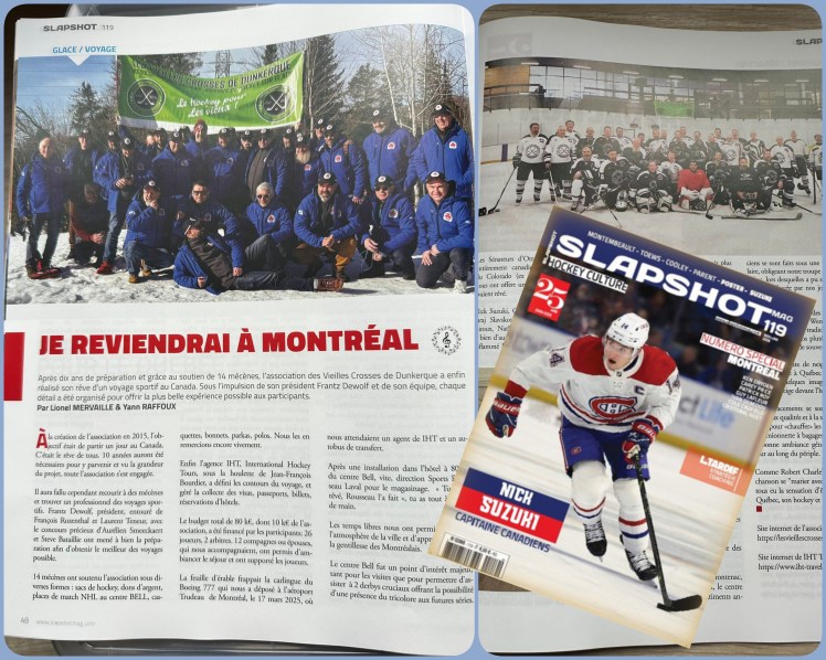 Canada 2025 Le voyage des Vieilles Crosses au Canada… On en Parle !!! (suivez le lien) Le voyage des Vieilles Crosses au Canada…on en parle encore ! double page dans le Slapshot – Merci à Lionel Mervaille et Yann Raffoux pour ce beau souvenir. Partager : Partager sur X(ouvre dans une nouvelle fenêtre) X Partager sur Facebook(ouvre dans une nouvelle fenêtre) Facebook J’aime chargement…